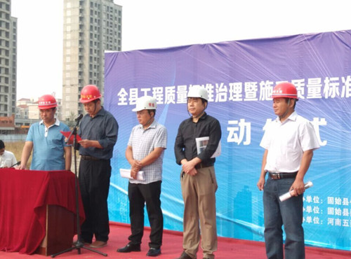 9月25日上午,由固始縣建設工程質量監督總站和固始縣建委承辦的全縣工程質量標準治理暨施工質量標準化觀摩活動啟動儀式在我公司承建的固始縣婦幼保健醫院項目施工現場隆重舉行。固始婦幼保健醫院業主、固始縣建設局、固始縣建設工程質量監督總站領導班子成員、固始各房地產開發公司負責同志以及縣各施工單位等有關人員共計200余人參加了儀式。