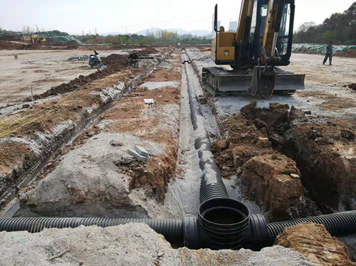 (1)停車場分層碾壓區(qū)(A區(qū)):預(yù)埋雨水、給水、強(qiáng)電、弱電管道?;靥钣晁⒔o水管溝。砌筑雨水井、檢查井。
