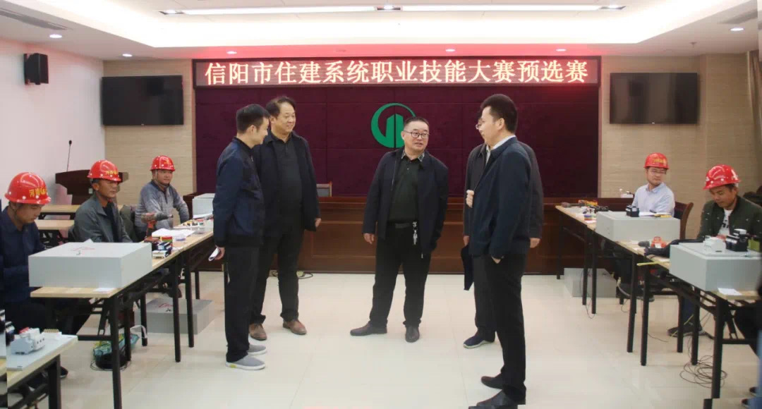 公司積極舉辦此次職業技能競賽,成為本地同行業中首先響應相關文件要求,開展此類活動的企業,受到上級主管部門的關注和肯定。12日下午,信陽市住建局主管副局長張奔、人事科科長晏慶軍、建管科科長劉彬等領導在公司黨委書記、董事長吳萬仁、副總經理吳建功陪同下,親臨競賽現場,看望比賽中的選手,為他們加油、助力。